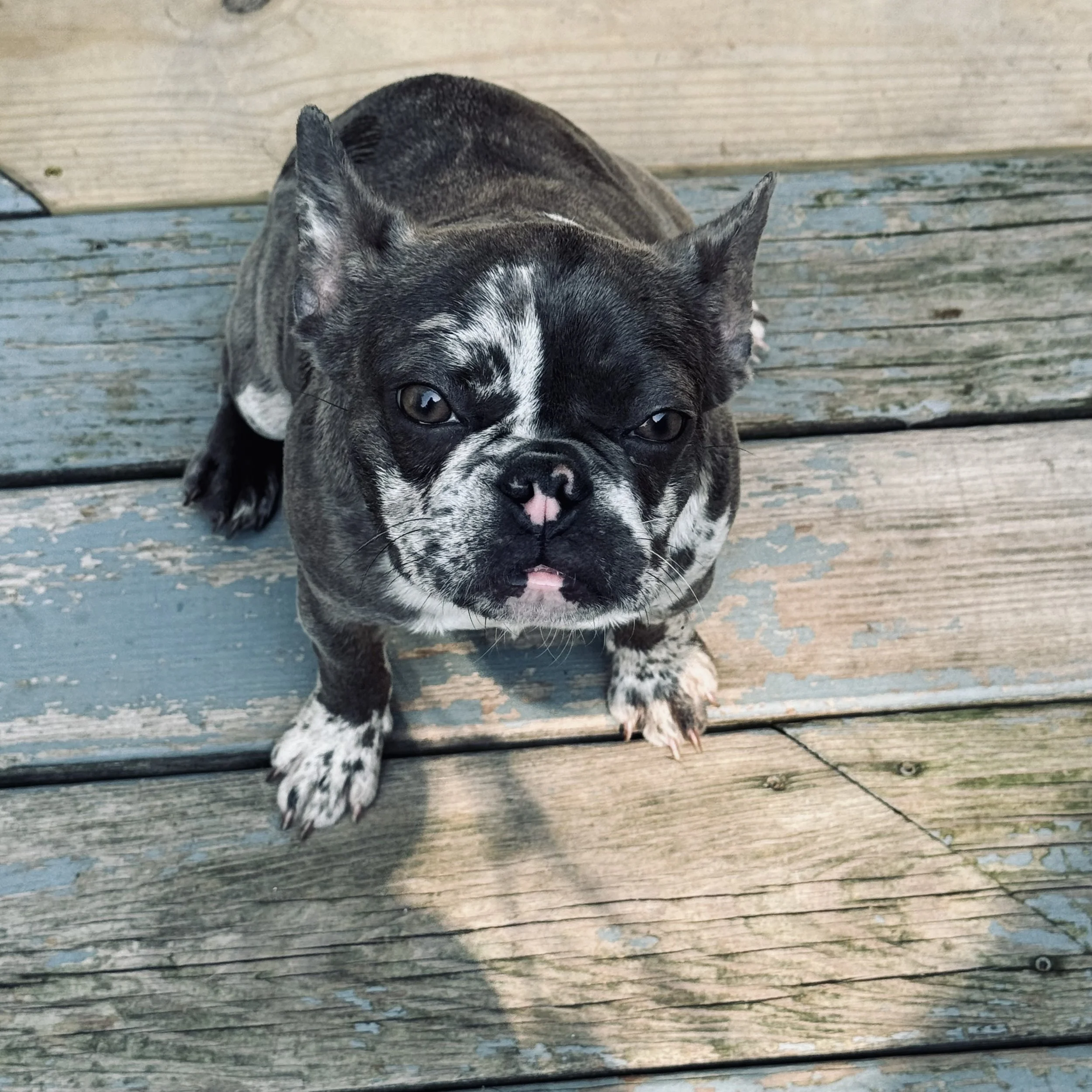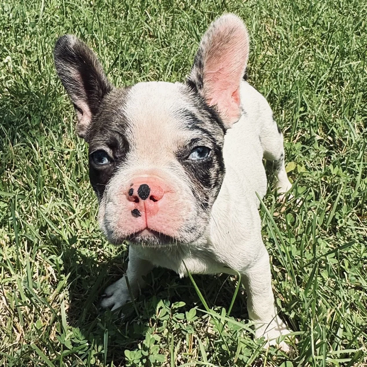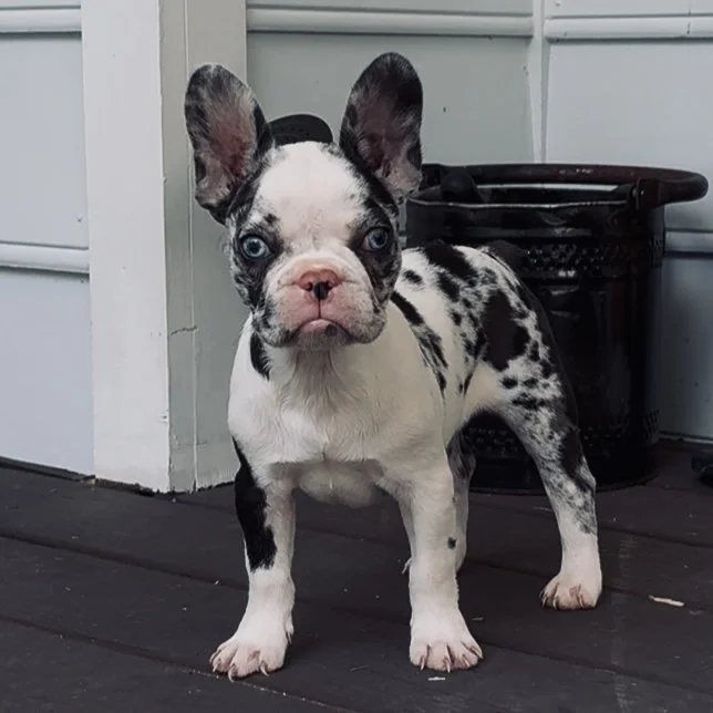 Lucy: (F) | Color: Merle| Birthday: 11/24/2024 | Price: $3500. Lucy is a sweet, energetic, and adorable 8-month-old Merle French Bulldog. She’s a little greedy and loves her treats, but her playful spirit and loving nature make her a wonderful companion. Lucy is full of life and ready for family fun adventures!