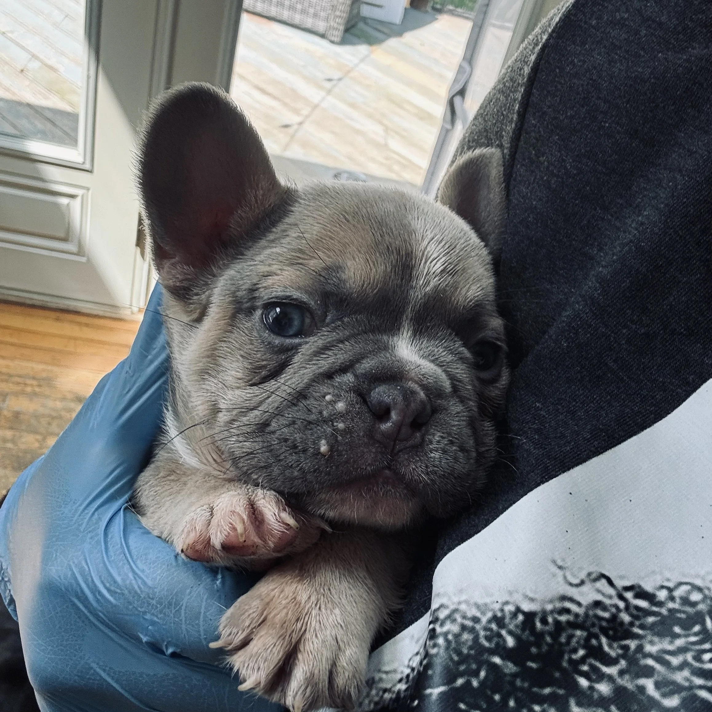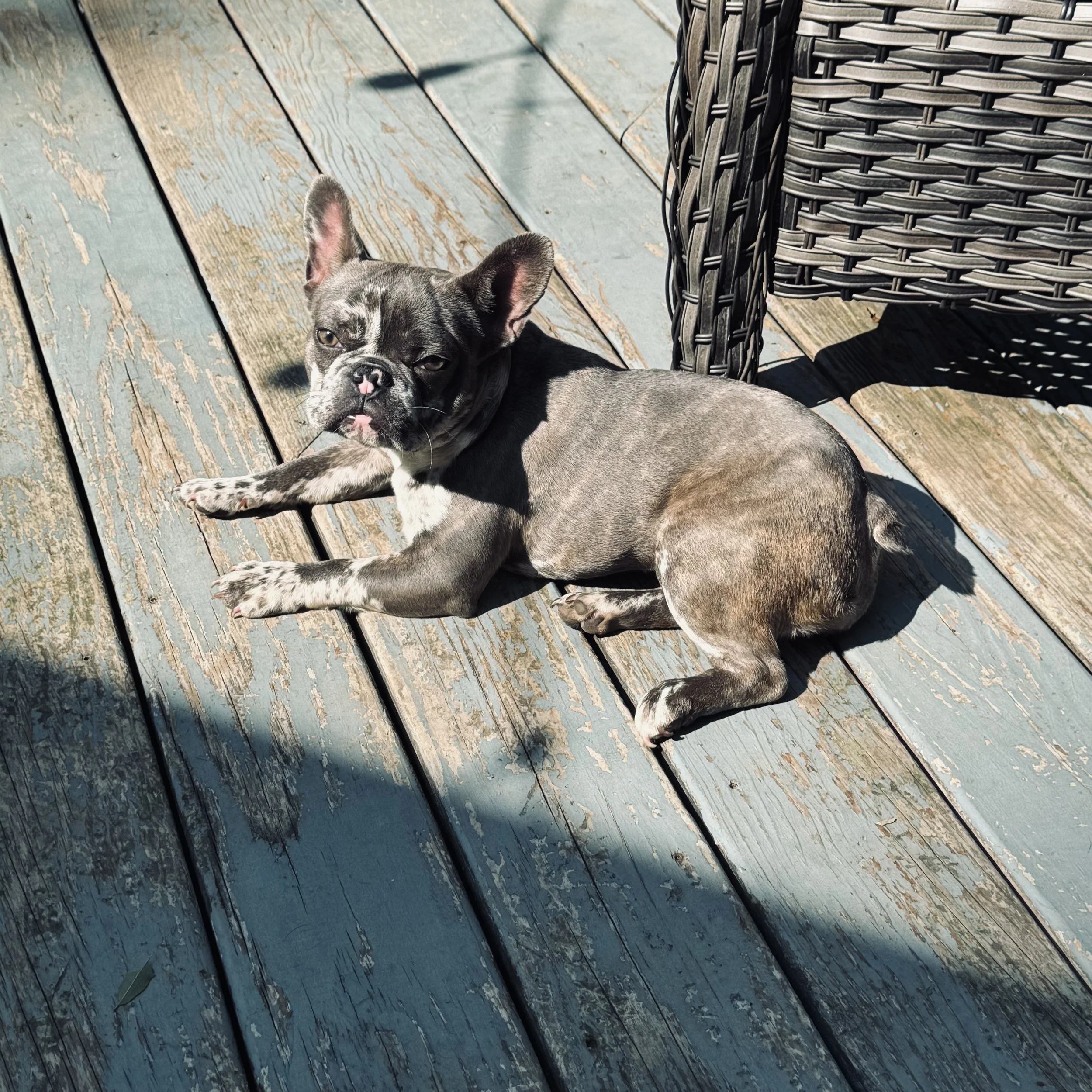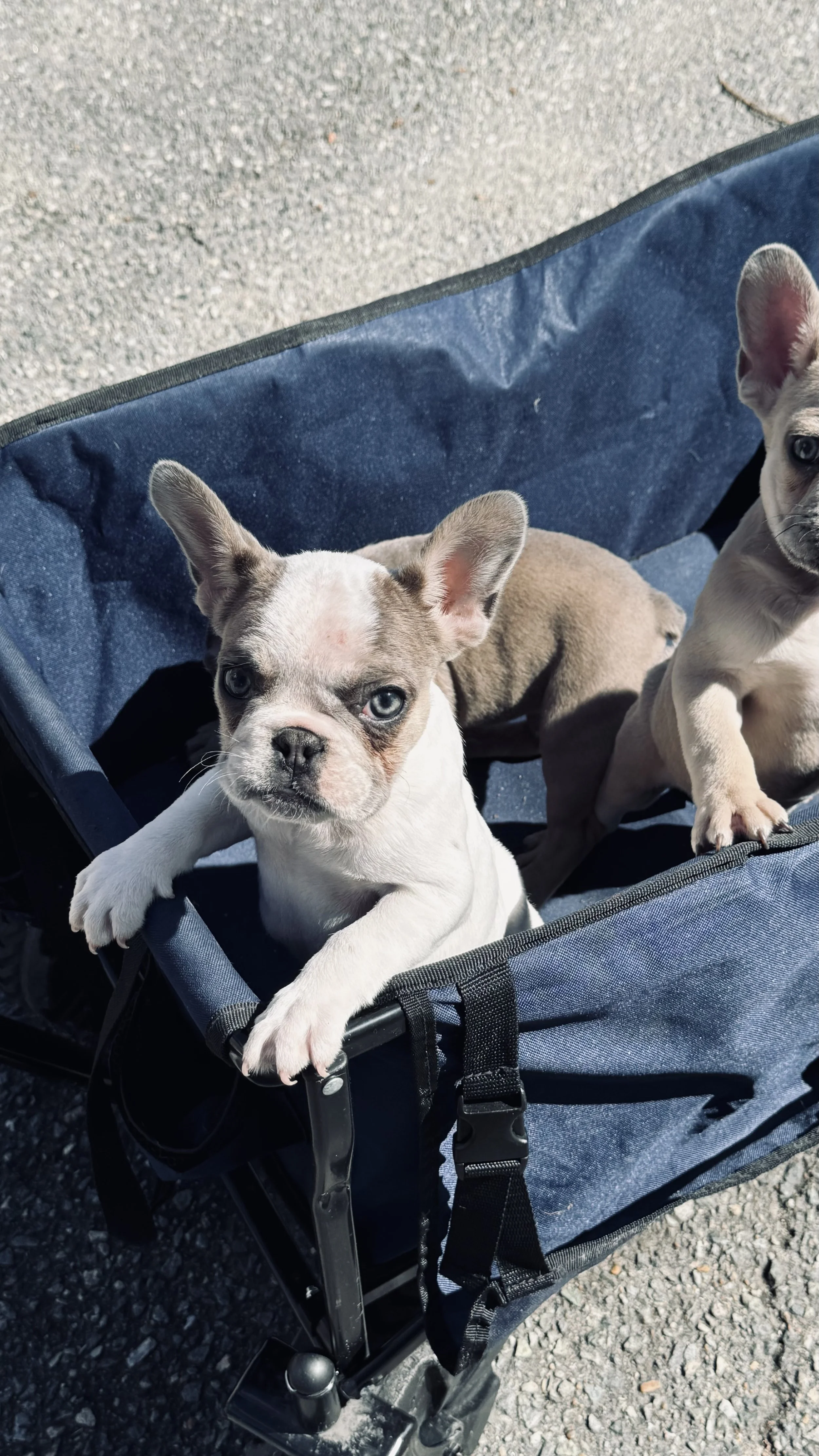 Lucy: (F) | Color: Merle| Birthday: 11/24/2024 | Price: $3500. Lucy is a sweet, energetic, and adorable 8-month-old Merle French Bulldog. She’s a little greedy and loves her treats, but her playful spirit and loving nature make her a wonderful companion. Lucy is full of life and ready for family fun adventures!